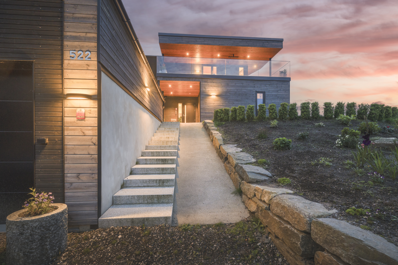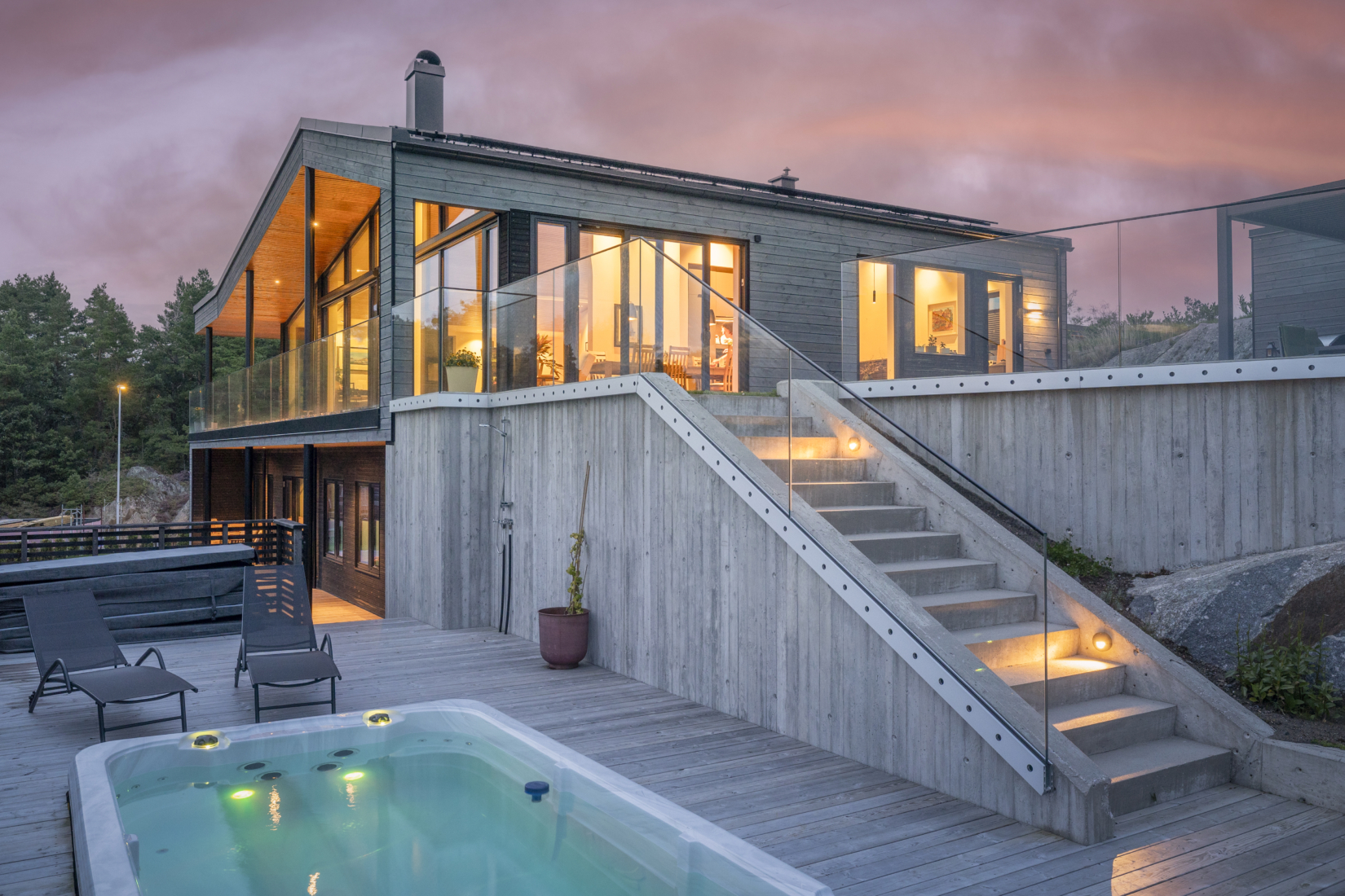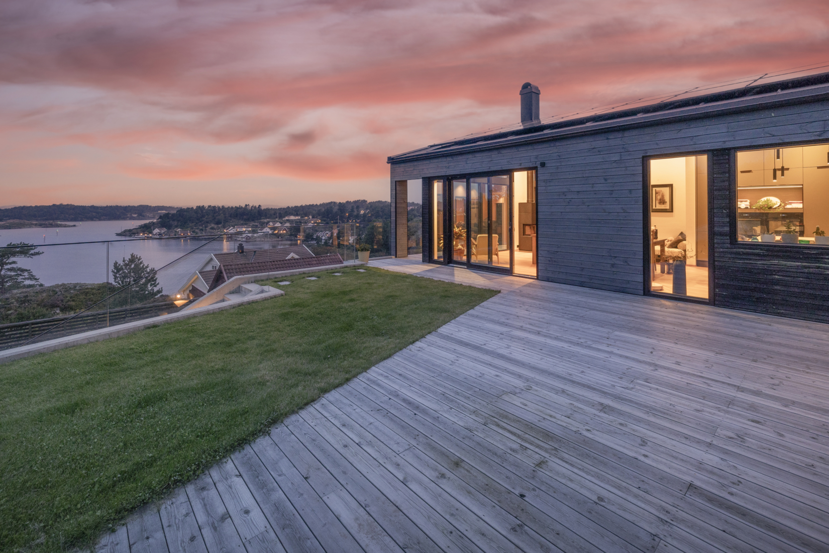 Moderne enebolig tegnet av REN Arkitektur, ferdigstilt i 2023. Vi fikk tegne og utvikle en enebolig på en flott tomt med en helt fantastisk utsikt. Viktige tanker var å tilpasse seg terrenget og samtidig lage en åpen og moderne bolig som fikk mest mulig ut av utsikten.
