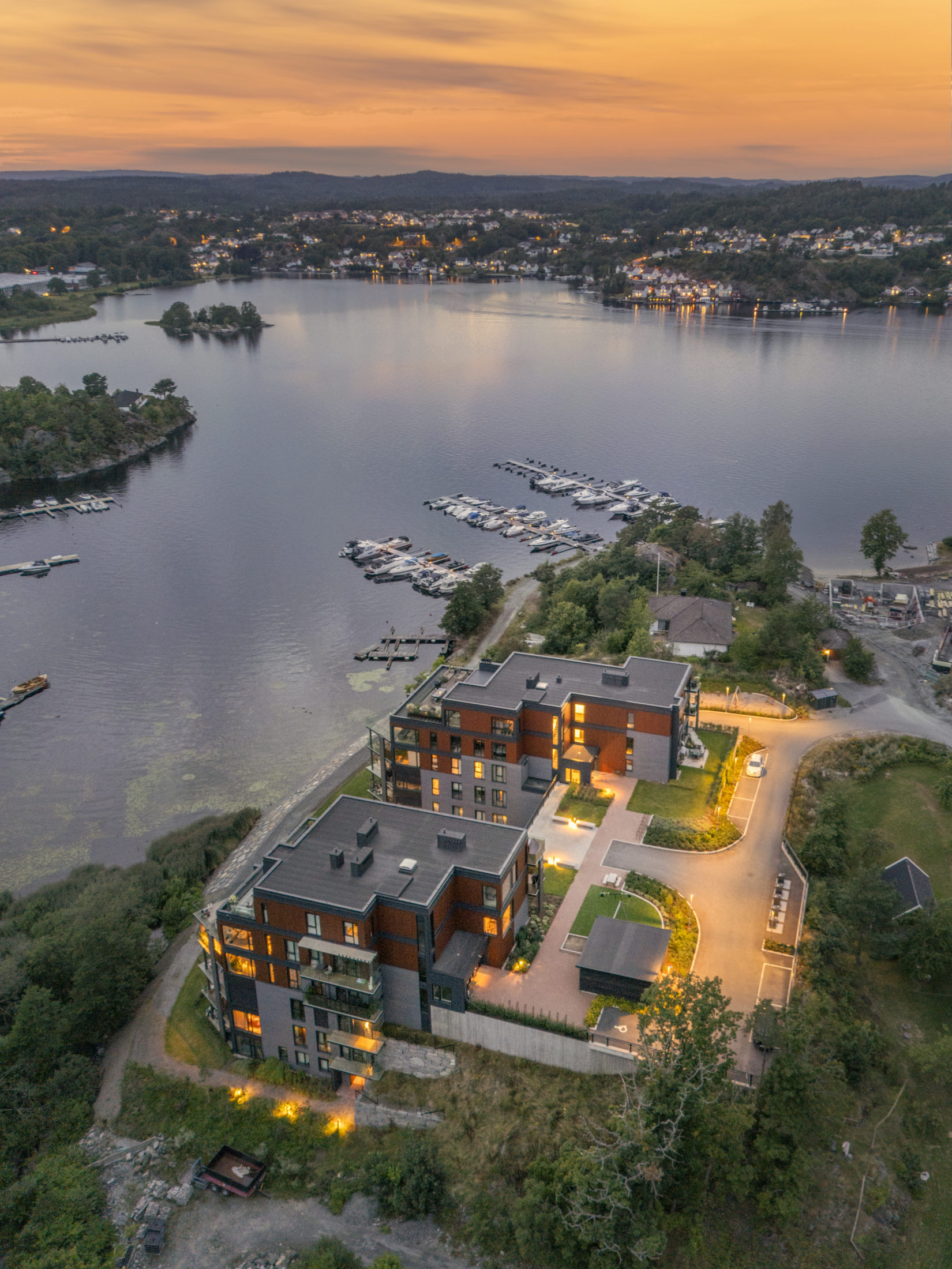 His Brygge er et unikt prosjekt med sol og utsikt til alle, riktig orientert i forhold til kveldssol og med flott utsikt over Hølen. Tomten ligger lunt og idyllisk ved Kokkeplassen på sørsiden av Hølen, på Hisøy utenfor Arendal. Utsikten over vannspeilet er storslagen med Nidelvåsen i nord og naturskjønne Tangen i vest, hvor Nidelva glir stille forbi idyllisk sørlandsbebyggelse. Ved utforming av leilighetene har vi vært svært opptatt av at alle beboere skal få oppleve tomtens unike beliggenhet.
