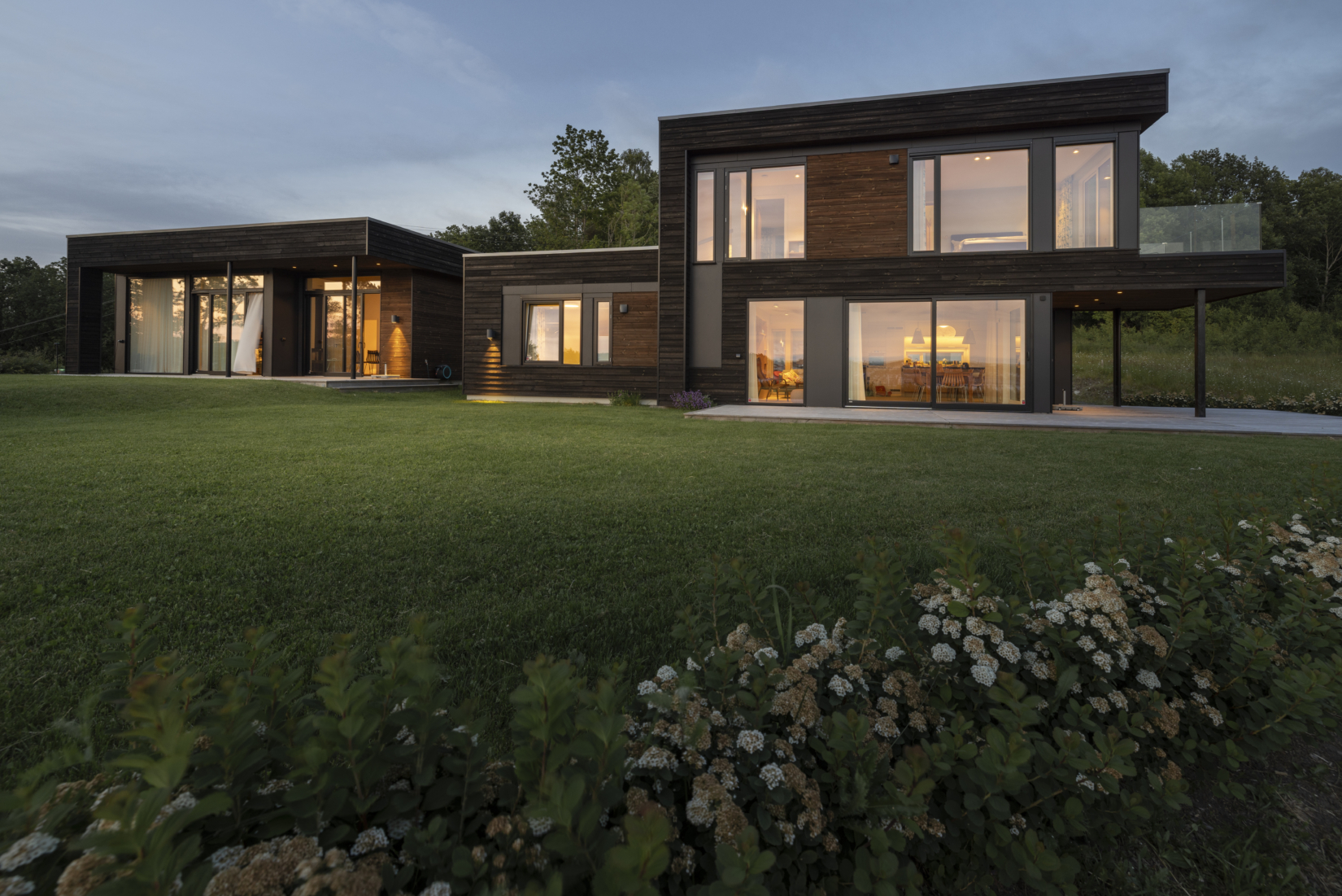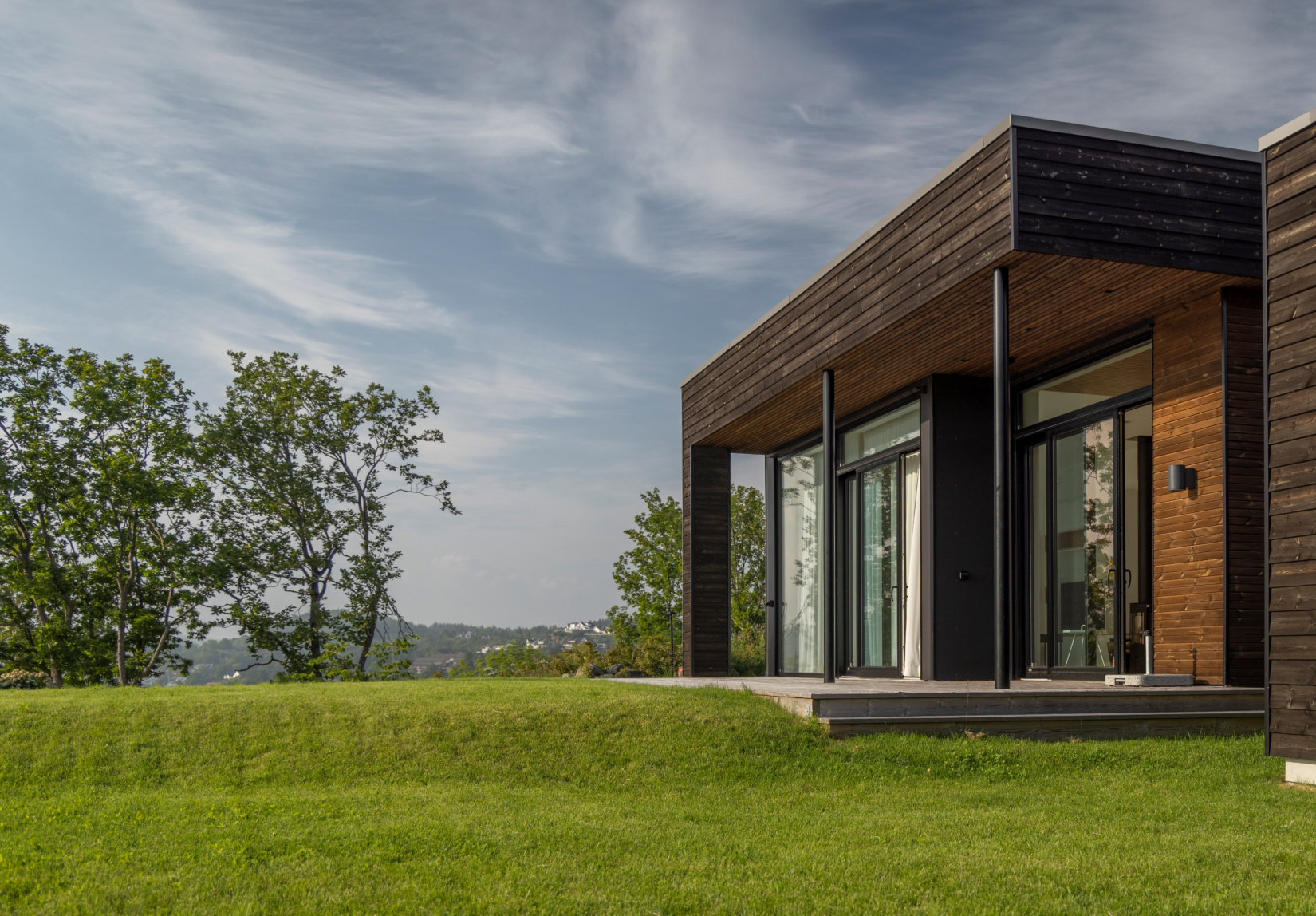 Hytten består av to bygningskropper i skogholtet, godt tilbaketrukket fra de ærverdige bygningene på Sofienlund på Tromøya i Arendal. Utsikt til Sofienlund og Tromøysundet er storslått, samtidig som nærutsikt til skog og de gamle jordene gir prosjektet kvalitet.
