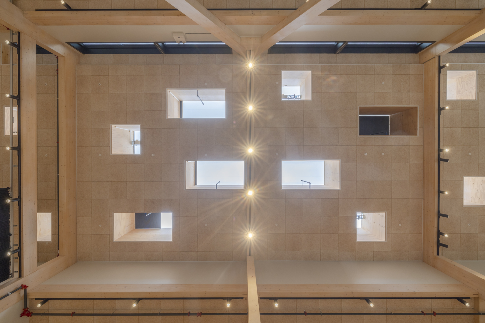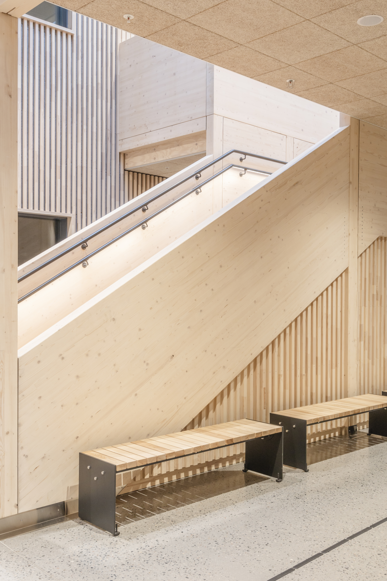 Treverk er eksponert i størst mulig grad for å fremheve materialets varme og naturlige uttrykk.