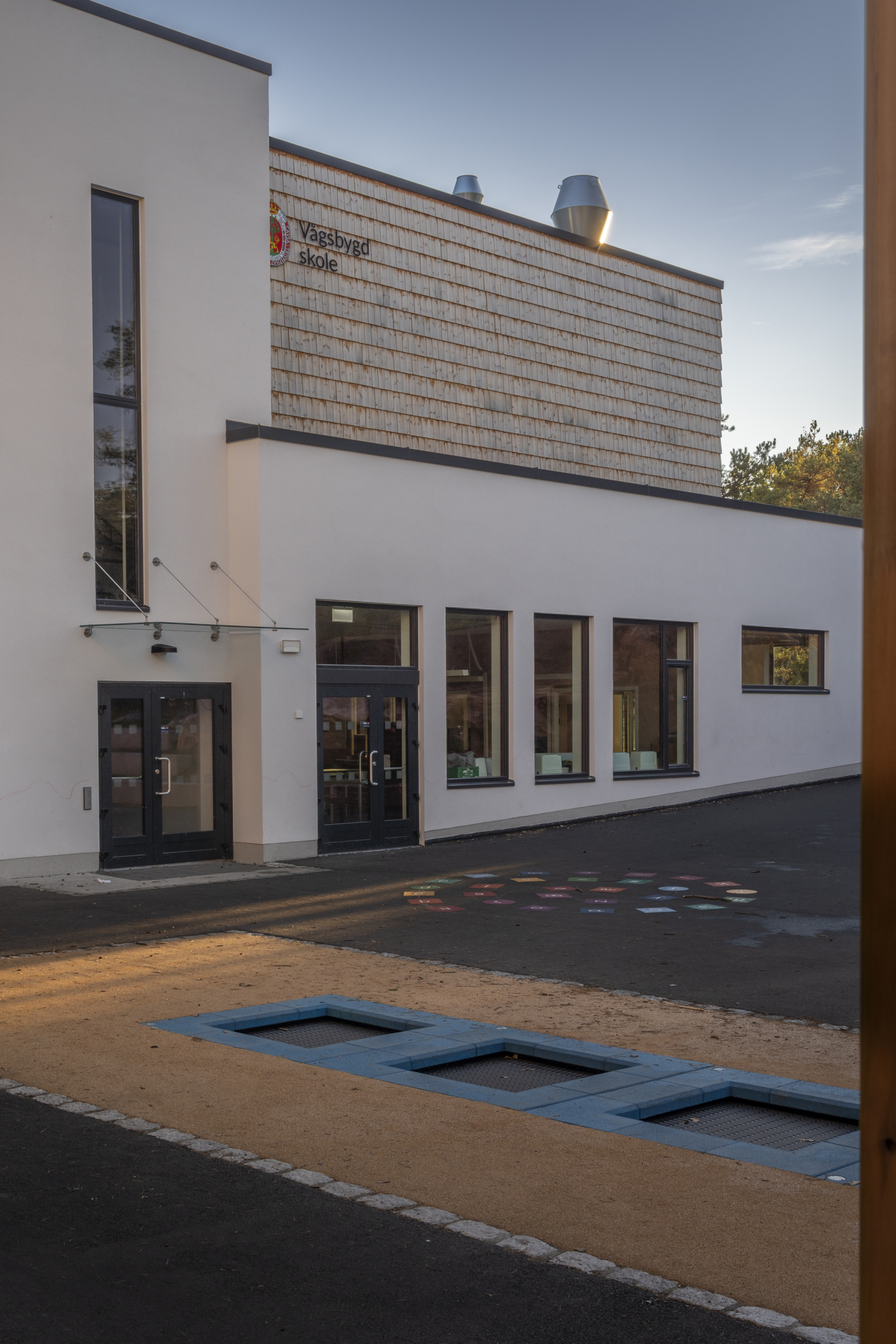 Vågsbygd skole er utformet og tegnet av Henning Larsen Architects og REN arkitektur har stått for detaljprosjektering av skolen.